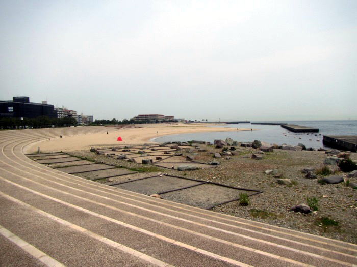 2022年5月19日に 5月16日か17日の神戸新聞に昼顔の写真がでていたのでそれを見にいった。昼顔はホテルセトレの東側にあるアジュール舞子にさいていた。人工砂浜に咲いている小さな花である。アジュール(英語(azure))とは青い、青空を意味する