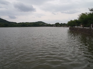 | 広沢池(ひろさわのいけ)は、京都市右京区の嵯峨広沢町にある周囲1.3kmほどの池である。日本三沢の一つにも数えられる。別名遍照寺池(へんしょうじのいけ)とも呼ばれる。2010年(平成22年)3月25日に農林水産省のため池百選に選定された。 1969年に古都保存法の歴史的風土特別保存地区に指定されている。池の西側には池へ突き出るような形の小さな島があり、観音島と呼ばれ、橋が架けられている。島の内部には石像の千手観音が祭られ、先端には弁天堂もある。現在は鯉の養殖が行われている。 平安時代の中期、989年(永祚元年)に遍照寺の建立にあわせ庭池として本堂の南に造営されたとも言われている。異説として、嵯峨野一帯を開墾した渡来系豪族の秦(はた)氏一族が溜池として造ったとも言われている。 平安時代に作られた池は、遍照寺と共に廃れて行ったが明治時代に、地元の人々の協力で修復された。 毎年 12月頃池の水をだし2月頃水をいれている。鯉は4月頃いれて 池を干すときにとりだし、京都の料亭にだしているとのことである。 歴史年表 奈良時代(8世紀)、嵯峨野を開拓した渡来系氏族・秦氏の支族が、池を開削したという。支族は、朝原(あさはら)山の名により、朝原を姓と称したという。(『続日本紀』766年の条) また、平安時代、989年、第59代・宇多天皇の孫で真言宗の僧・寛朝(かんちょう、916- 998)僧正が、朝原山の麓の山荘を改めて寺院にした。寺名を遍照寺(へんじょうじ)といい、その際に開削した池ともいう。池は、遍照寺池と呼ばれたという。朝原山は、嵯峨富士、遍照寺山とも呼ばれた。池には金色の観世音菩薩を祀る観音島があり、橋が架けられ、観月の名所となっていた。畔に多宝塔、釣殿、大覚寺の観月所だった潜竜亭が建てられていた。 寛朝没後、寺は次第に衰微する。 鎌倉時代、第91代・後宇多天皇により復興された。 室町時代、応仁・文明の乱(1467-1477)により再び荒廃した。 現代、1955年、嵯峨用水により、清滝川の水がトンネルにより広沢の池にも流入するようになった。このため、周辺の灌漑用水不足が解消され、南側の農地では、いまも京野菜、水稲などが耕作されている。 一条通りから池を眺めていると、対岸にも紅葉や建物が。 これは宗教団体・世界救世教の施設で「平安郷」。 数寄屋風の建物は中の茶屋だそうですが、見事な庭だそう。 毎年春と秋に一般公開されます。 |