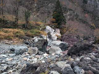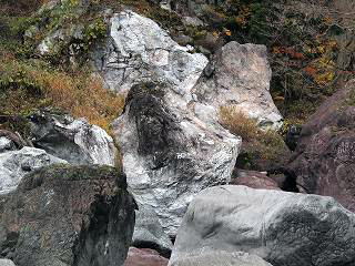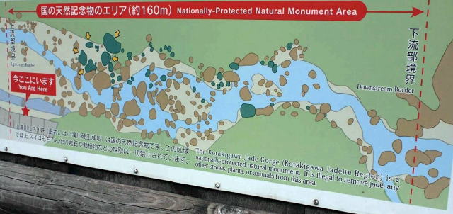 | 小滝川ヒスイ峡でのヒスイの状況(ヒスイは天然記念部ですのでとってはいけません) |