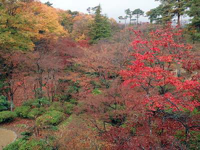 | 弥彦駅近くにあり、16万m2にも及ぶ広さがあります。滝や渓流、高台、トンネルなどが美しい調和を保っています。とくにもみじ谷の観月橋は昔の木橋を再現したもので秋の紅葉の頃は絶景です。ツツジや花菖蒲などがいたるところに植えられ、四季折々に美しい花が楽しめます。 |