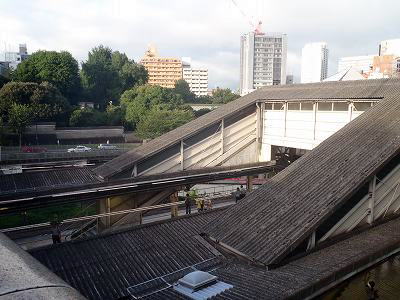 | むこうの森が湯島聖堂 手前はJR御茶水駅 2016/8/19撮影 |