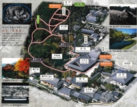 天龍寺。臨済宗臨済宗天龍寺派大本山。正しくは霊亀山天龍資聖禅寺で、京都市右京区嵯峨に位置する。1339年吉野で亡くなった後醍醐天皇の菩提を弔う為に、足利尊氏が夢窓国師を開山として創建した。この地は檀林皇后(嵯峨天皇の后)が開創した檀林寺のあったところで、のちに後嵯峨上皇の仙洞御所・亀山殿が営まれた。後醍醐天皇はここで幼少期を過ごした。夢窓国師は堂塔建立の資金調達のため「天龍寺船」による中国・元との貿易を進言し、1343年には七堂伽藍が整った。夢窓国師の門流は降盛し、天龍寺は京都五山第一位の寺格を誇った。創建以来天龍寺は1356をはじめ8回の大火に見舞われ現代の堂宇の多くが明治期の創建である。