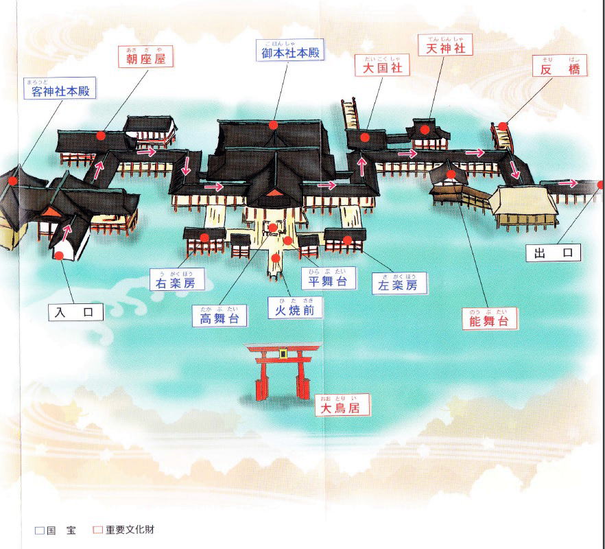 | 松島・天橋立と並び日本三景「安芸の宮島」 として知られ、平成8年(1996年)12月にはユネスコの 世界文化遺産に登録され、厳島神社社殿をはじめ 前面の海と背後の弥山が、人類共通の文化遺産として 後世に継承されることになった。 厳島神社のパンフレットより |