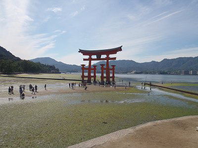 | 大鳥居 | 引き潮のため「青のり」が現れる |