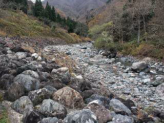 | 小滝川ヒスイ峡でのヒスイの状況(ヒスイは天然記念部ですのでとってはいけません) |